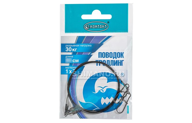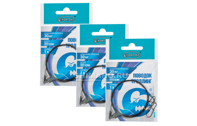 Поводки Контакт 1x7 Для троллинга T30кг. 50см.-6шт. (3уп. по 2шт.)