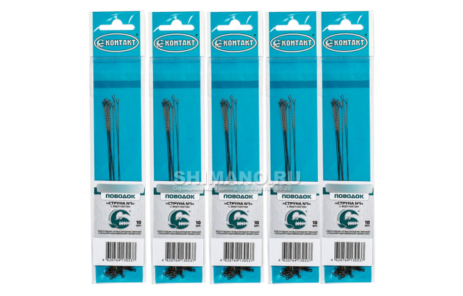 Поводки Контакт Струна №1 12см. 6,5кг. 50шт. (5уп. по 10шт.) (с вертлюжком)