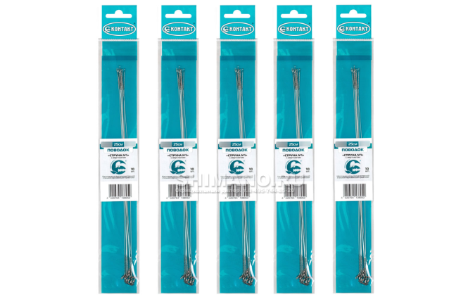 Поводки Контакт Струна №2 15кг. 30см. 50шт. (5уп. по 10шт.) (с вертлюжком)